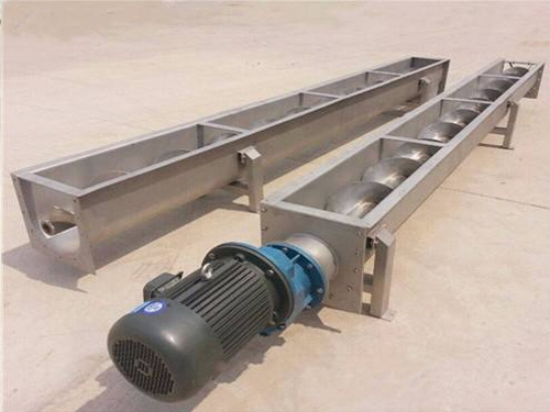 一般情況下,出廠總裝時(shí)將螺旋輸送機(jī)中間節(jié)按長(zhǎng)度長(zhǎng)短依次排列,長(zhǎng)的中間節(jié)靠近頭節(jié),相同長(zhǎng)度的中間節(jié)則挨在一起,如果有特殊要求,則在訂貨時(shí)給出排列順序。在螺旋輸送機(jī)頭節(jié)內(nèi)裝有支推軸承承受軸向力,在中間節(jié)和尾節(jié)內(nèi)裝有用軸承支承螺旋軸,此外,在螺旋輸送機(jī)尾節(jié)內(nèi)還裝有可軸向移動(dòng)的徑向軸承以補(bǔ)償螺旋軸長(zhǎng)度的誤差和適應(yīng)溫度的變化。螺旋輸送機(jī)螺旋面的形式有實(shí)體螺旋(S制法)和帶式螺旋(D制法)兩種。各螺旋軸之間采用法蘭式聯(lián)接, 保證了聯(lián)接軸的互換性,便于維修。螺旋輸送機(jī)機(jī)蓋為瓦片式并用蓋扣夾緊在機(jī)殼上,若需改進(jìn)密封性能,用戶可自行在機(jī)蓋與機(jī)殼間加防水粗帆布。 螺旋輸送機(jī)進(jìn)、出料裝置有進(jìn)料口,方型出料口,手推式出料口,齒條式出料口四種,由用戶在使用現(xiàn)場(chǎng)在機(jī)體上開口焊接。